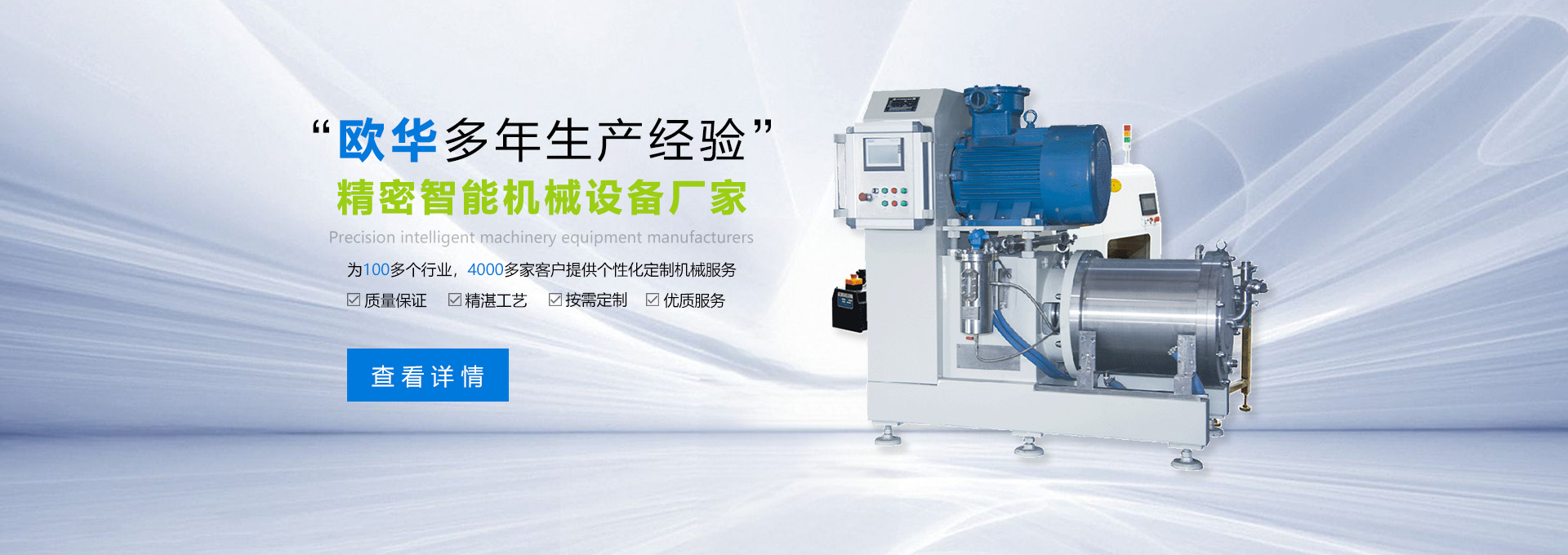 東莞市歐華機械有限公司,是一家專業從事濕法研磨、化工分散、成套智能化設備的生產型企業。公司兩大生產基地,分別座落于擁有中國制造業之都的東莞厚街與中國重工業之城的湖南株洲。是集研發、設計、銷售、服務為一體的高新技術企業。